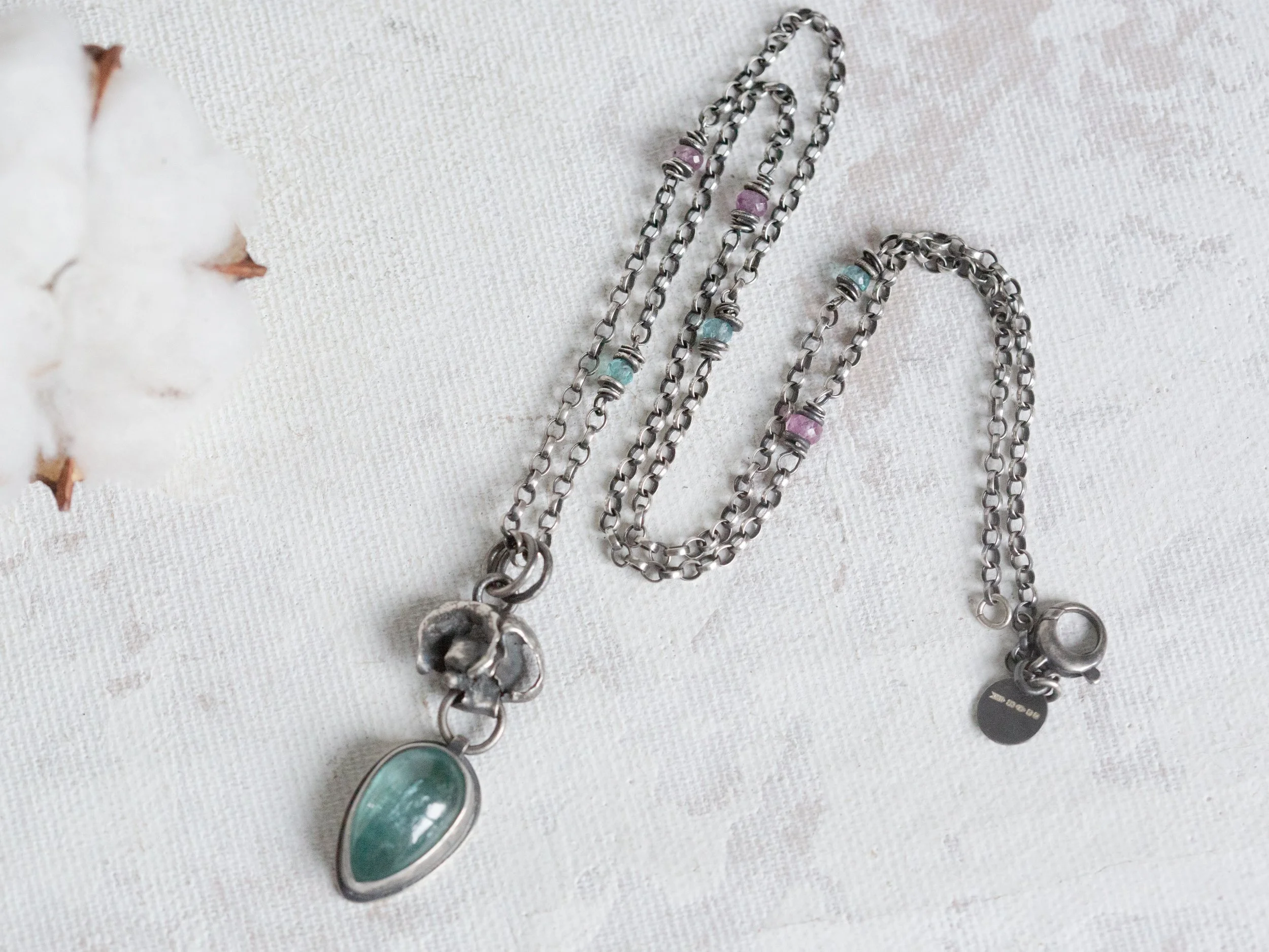 Kyanite Pendant Necklace with Ruby and Topaz beaded Chain